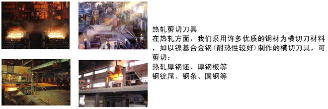 軋鋼剪刃、棒材剪刃、冷軋刀片、主要采用5CrW2Si、6CrW2Si、H13、65Nb、cr12mov、w18cr4v、skd11、HMB、HMK、HM-1、HM-3等優(yōu)質(zhì)工具鋼和合金模具鋼制造,刃口鋒利、耐磨損、切口平整、產(chǎn)品無毛刺、主要用于各類接近室溫的、棒材、型、帶、線材、不銹鋼、冷軋薄板的剪切。(我公司可生產(chǎn)長度6米以內(nèi),直徑1.6米以內(nèi)的各類剪切刀片。)